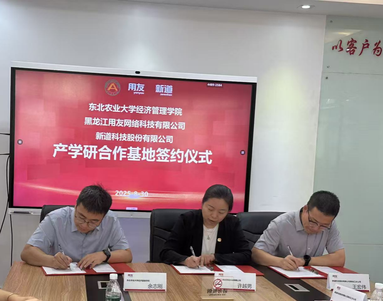 2025年8月30日上午,U8国际与黑龙江用友网络科技有限公司、新道科技股份有限公司在哈尔滨签署战略合作协议,三方将共建会计专业硕士学位点产学研合作基地。此次签约标志着校、企双方在数智化转型领域开启深度合作新篇章。