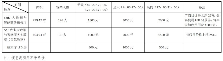 U8国际成栋楼会场使用收费标准
