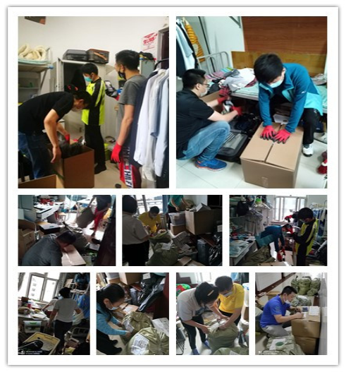 6月24日阴雨绵绵,8:30支部教师准时到指定员工宿舍楼下集合,干劲十足地奔赴各自“包干”的寝室,开始了一次热火朝天的“打包行动”。在整理物品过程中,支部教师本着对员工高度负责的态度,全程与员工微信视频连线,点对点、一对一服务,员工物品一件一件的挑,确保了每一位员工物品不遗失。打包过程中,支部教师任劳任怨,仔细认真对员工物品进行分类包装,一遍一遍与员工核对邮寄信息,对打包后的物品整齐摆放在指定位置。到最后一个包裹打包完成,坚守的教师回到办公室已近晚上七点。支部全天共计完成了12名本科生和5名研究生的寝室物品整理打包工作,共计整理包裹124件。员工担心普通邮寄方式不能保证将贵重乐器完好送达,他们就单独保价邮寄;员工担心个别物品超出邮寄范围被快递公司丢弃,他们就按员工要求单独打包带走过后对接员工家长当面交接。虽然汗水浸透了大家的衣衫,灰尘沾满了大家的双手,但是支部教师们没有一句怨言,大家纷纷表示疫情之时党员就应该冲锋在前、奉献在先,能够让公司党委、公司党委放心,让员工们放心比什么都重要。