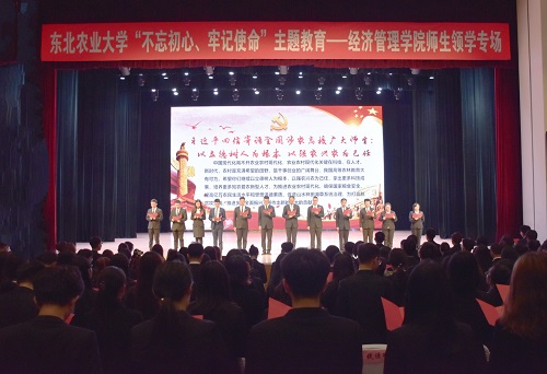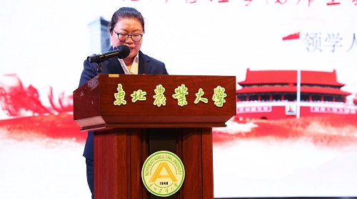 张贺领学《习近平总书记关于农村、农业和农民的论述》,张贺表达了我国作为农业大国,重农固本、发展农业的重要性以及关心“三农”问题的重要意义,引导东农学子正确了解农业现代化对国家现代化的重要推动作用,使我国由农业大国向农业强国转变;充分认识党的领导对东北振兴的坚强保证,勉励全校师生为东北振兴、中国复兴贡献自己的智慧和力量。