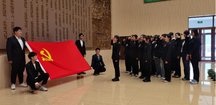 “我志愿加入中国共产党……随时准备为党和人民牺牲一切,永不叛党。”全体党员在宋雅楠同志的带领下,面对鲜红的党旗和庄严的誓词,共同高举右拳,庄严宣誓。