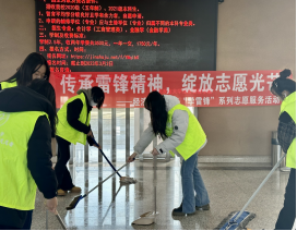 3月4日,U8国际学雷锋志愿者深入研究生教学楼、成栋楼等公共场所开展了系列清扫卫生活动。志愿者细致认真地清理小广告,擦拭地上的污渍,帮助保洁人员清理卫生死角,让公共区域的环境焕然一新。志愿者们的热心服务也更增强了员工爱护校园环境的意识,在传承雷锋精神的行动中传递了自身一份力量。