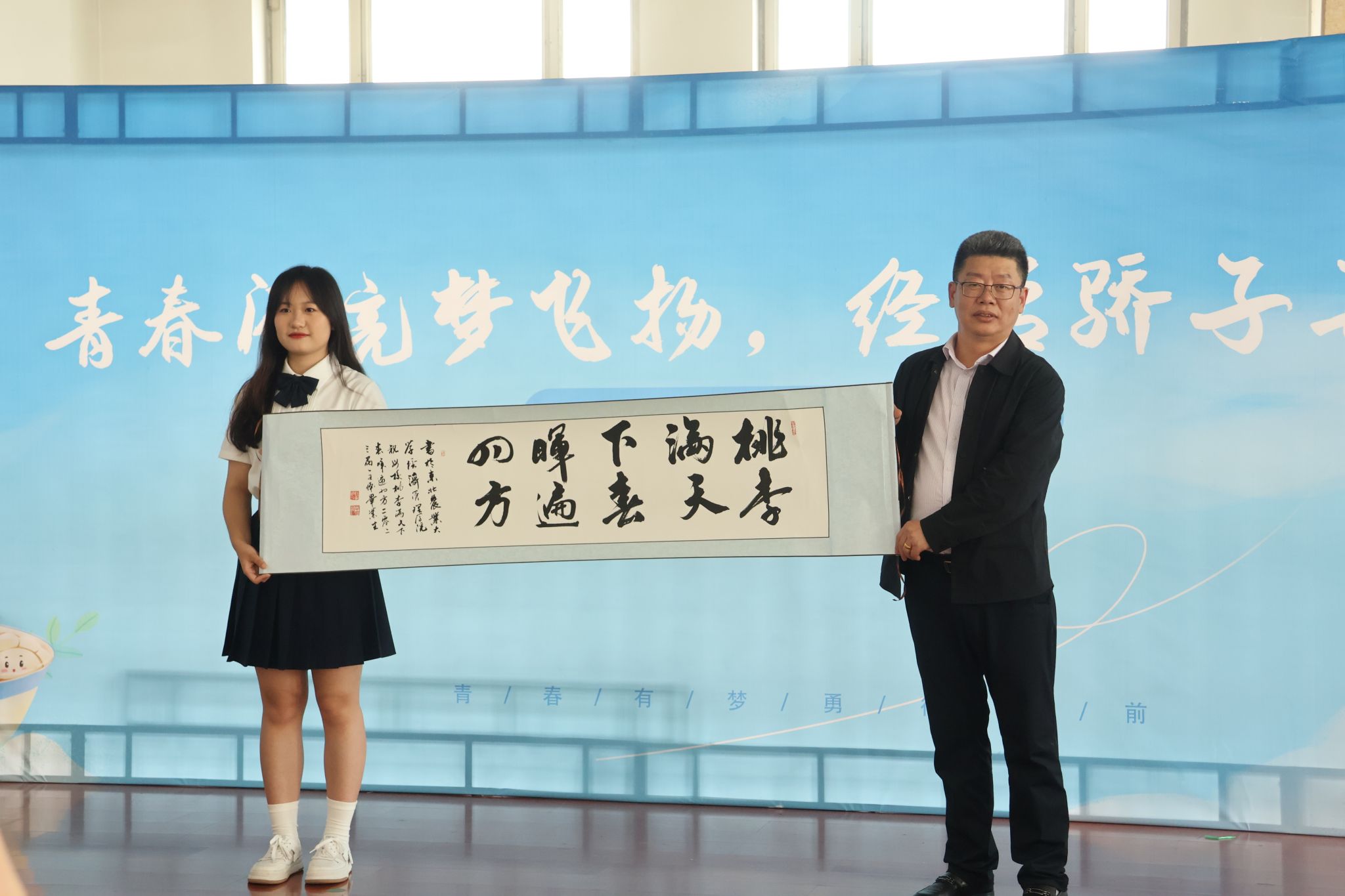 怀揣着对母校的感恩之情,金融1905班何佳欢同学代表毕业生献上书法作品,回馈母校的教导和培育,祝福母校桃李满天下,春晖遍四方。张启文代表公司接受赠品,同时表达毕业生最诚挚的祝福。四位即将奔赴西部、扎根基层的优秀毕业生代表在现场带来题为《青春不散场,梦想当远航》的朗诵,用声情并茂的朗读表达对母校、老师的感恩之情以及对未来的期许。