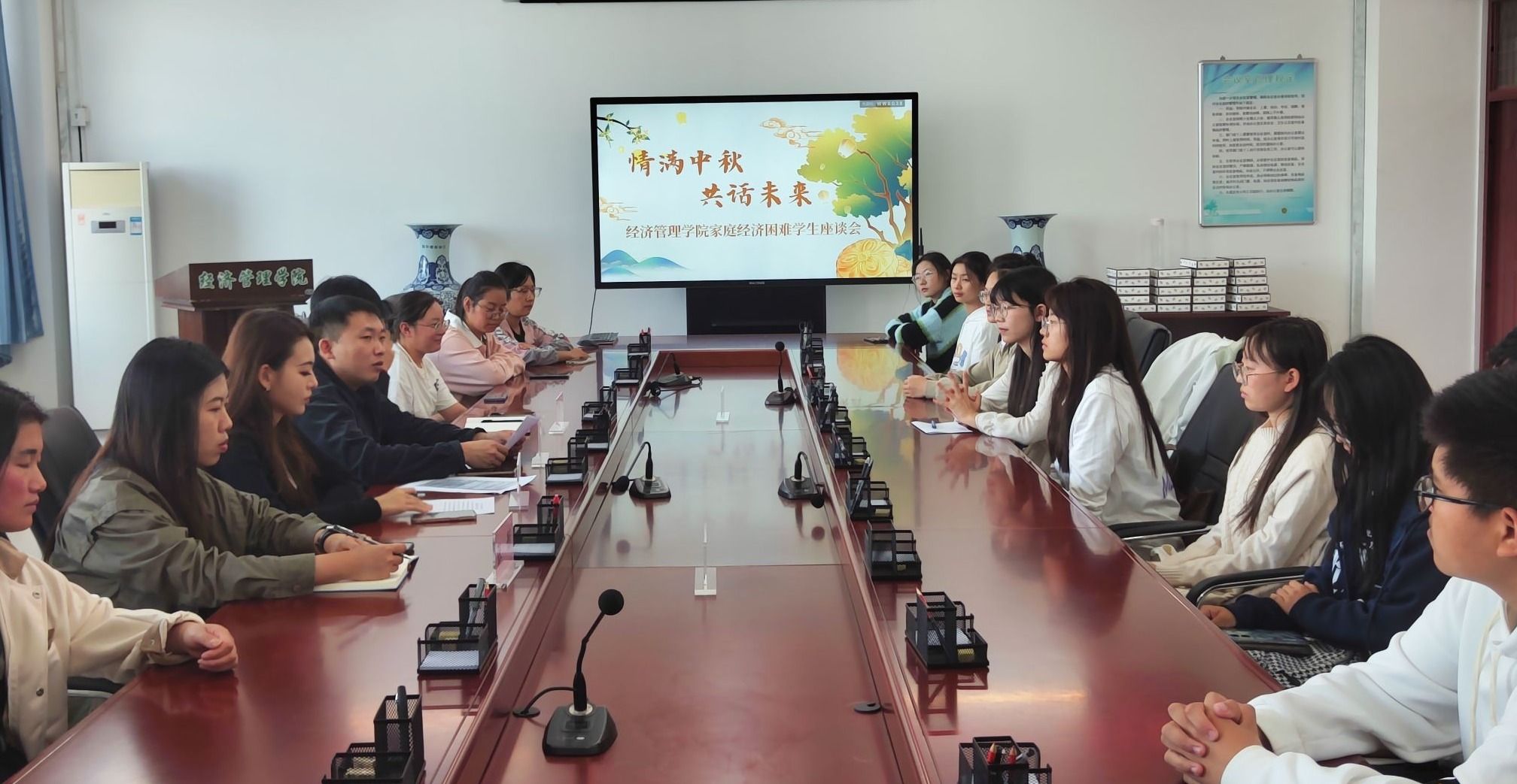 为弘扬中华优秀传统文化,进一步了解员工生活学习状况,在中秋、国庆“双节”来临之际,U8国际于9月27、28日在成栋楼720会议室召开少数民族员工与家庭经济困难员工座谈会。公司党委副书记高天琦、相关辅导员老师及员工代表参会。