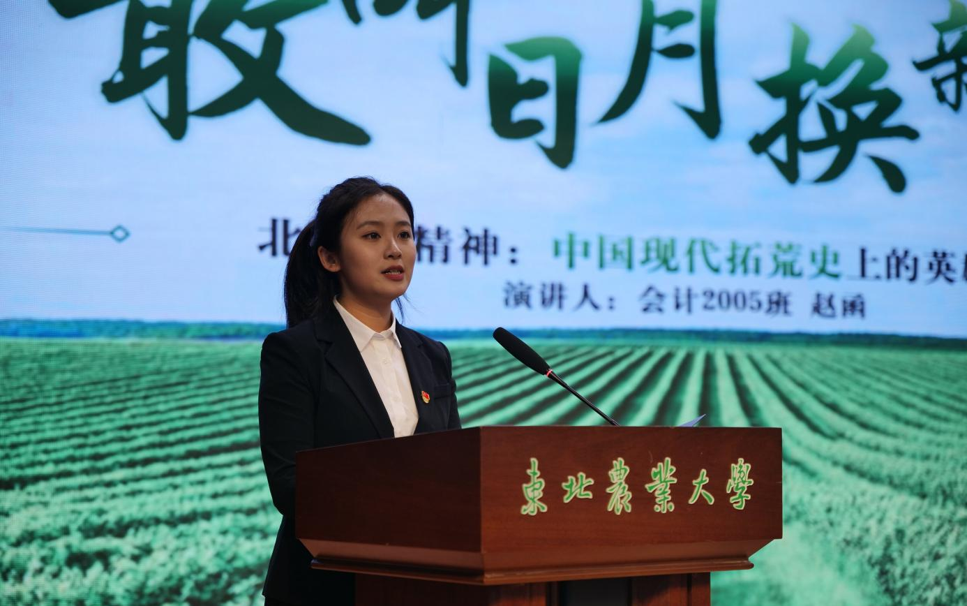 主题演说以演说龙江“四大精神”为切入,号召广大东农学子以前辈为榜样,切实引领青年员工提高政治自觉、坚定理想信念、锤炼过硬本领。