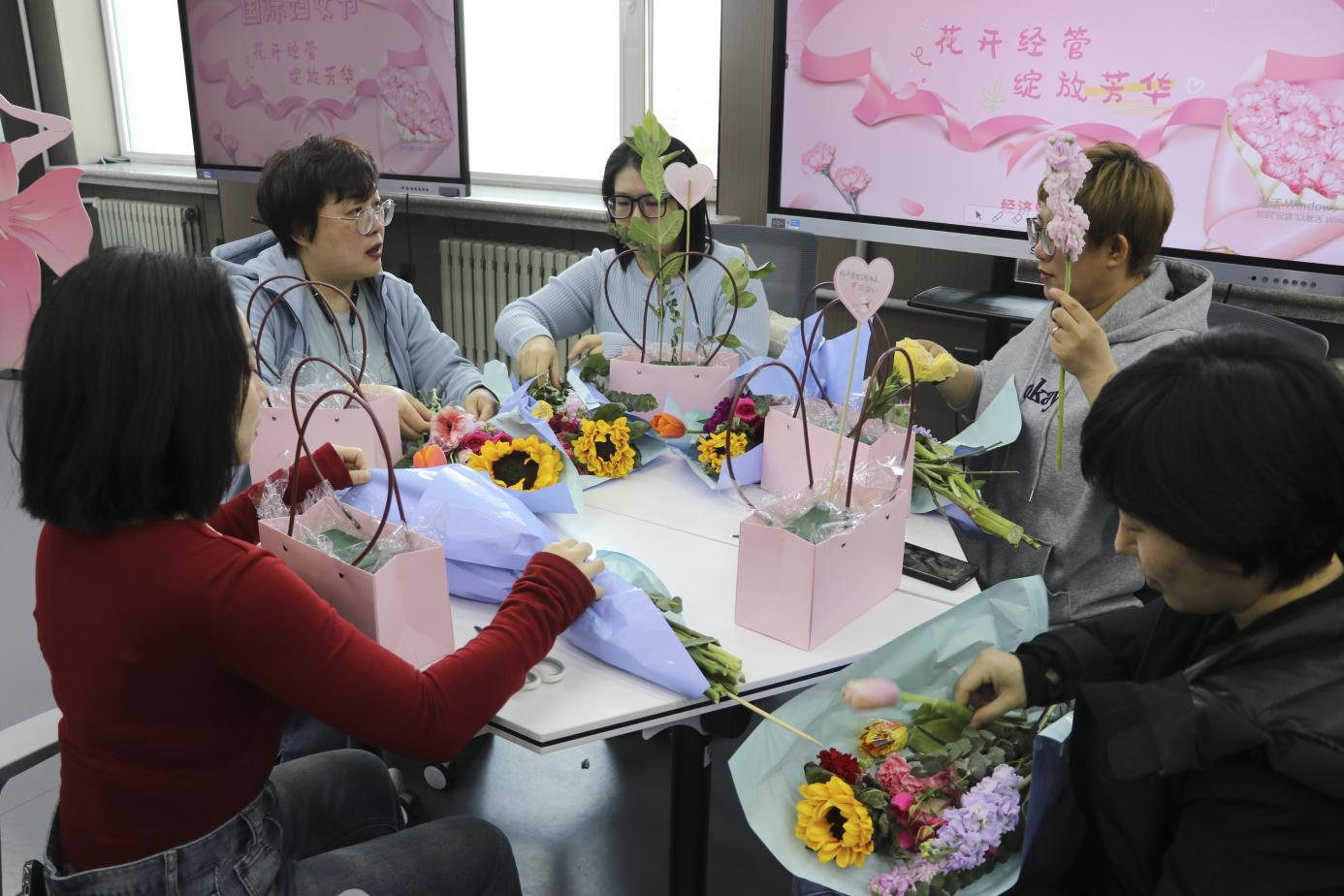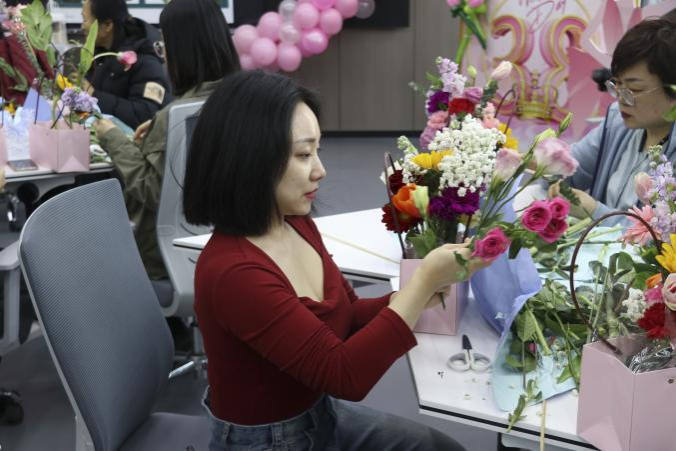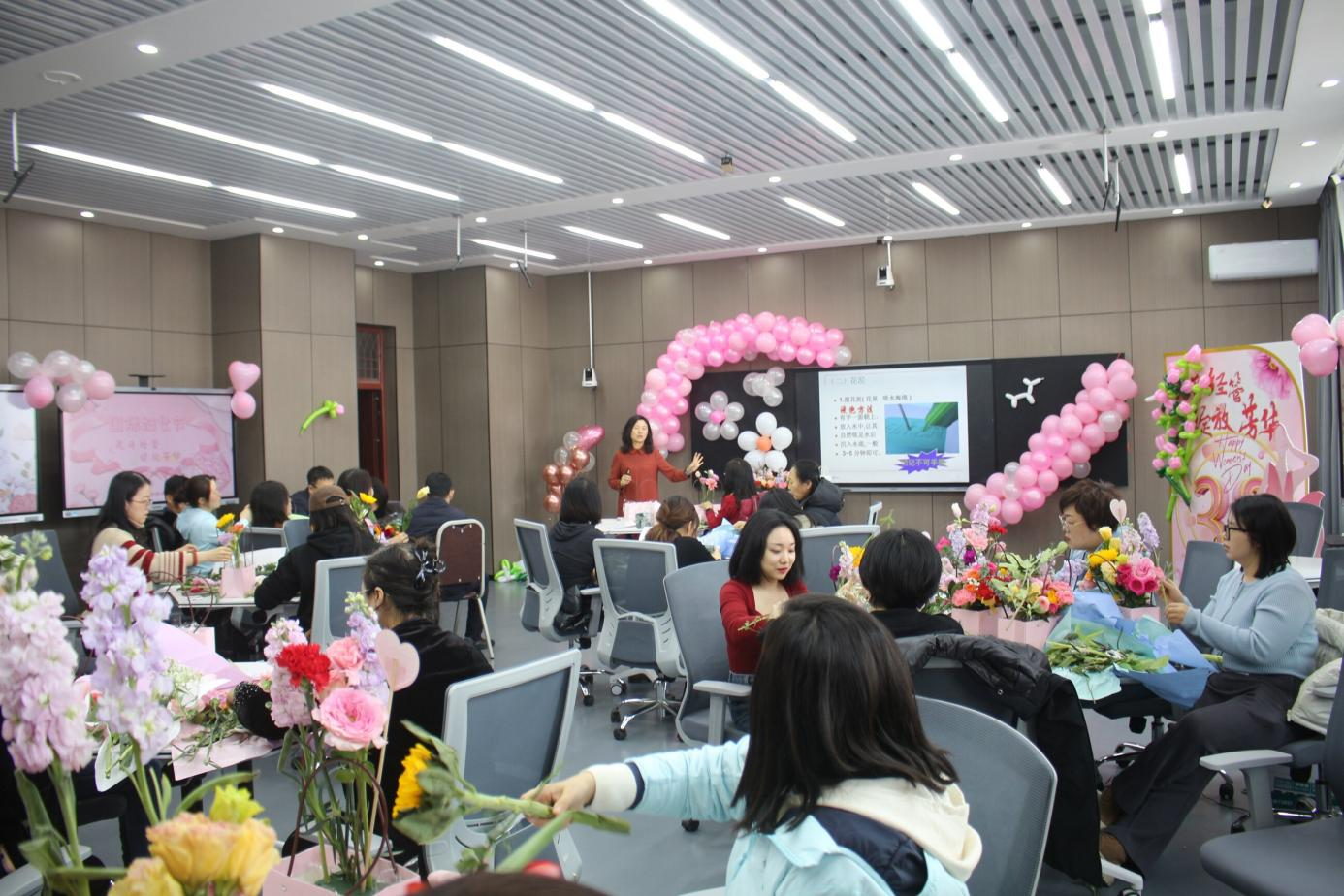 为扎实开展“爱校如家,争做主人翁”系列活动,全面培养师生员工的爱校荣校意识,激发广大师生员工当好主人翁、建功新时代的干事创业精神,提升教职工参与感、获得感和幸福感,展现女教职工在公司事业发展中的良好精神风貌,在第114个“三八”国际劳动妇女节来临之际,U8国际工会开展以“花开经营、绽放芳华”为主题的手工插花活动,邀请园艺园林公司园林系樊金萍教授现场为大家进行讲解和指导。公司领导班子全体成员及全体女教职工参加活动。活动由公司党委副书记、工会主席高天琦主持。