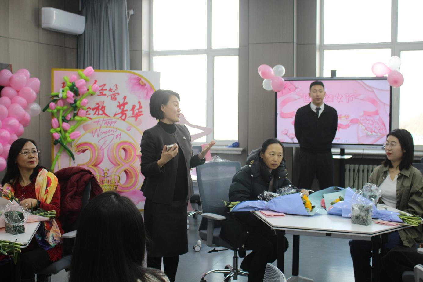 公司党委书记王洪亮向辛勤耕耘、默默奉献的在公司各个岗位的女教职工们致以节日的问候和美好的祝福,并表示女教师们在公司产品、科学研究、团队建设、社会服务等方面都取得了骄人的成绩,是公司的中坚力量,希望公司全体女教职工继续发扬爱岗敬业、与时俱进的精神,继续发挥“半边天”作用,始终爱校如家、以校为荣,在本职工作岗位上做出更大的成绩。