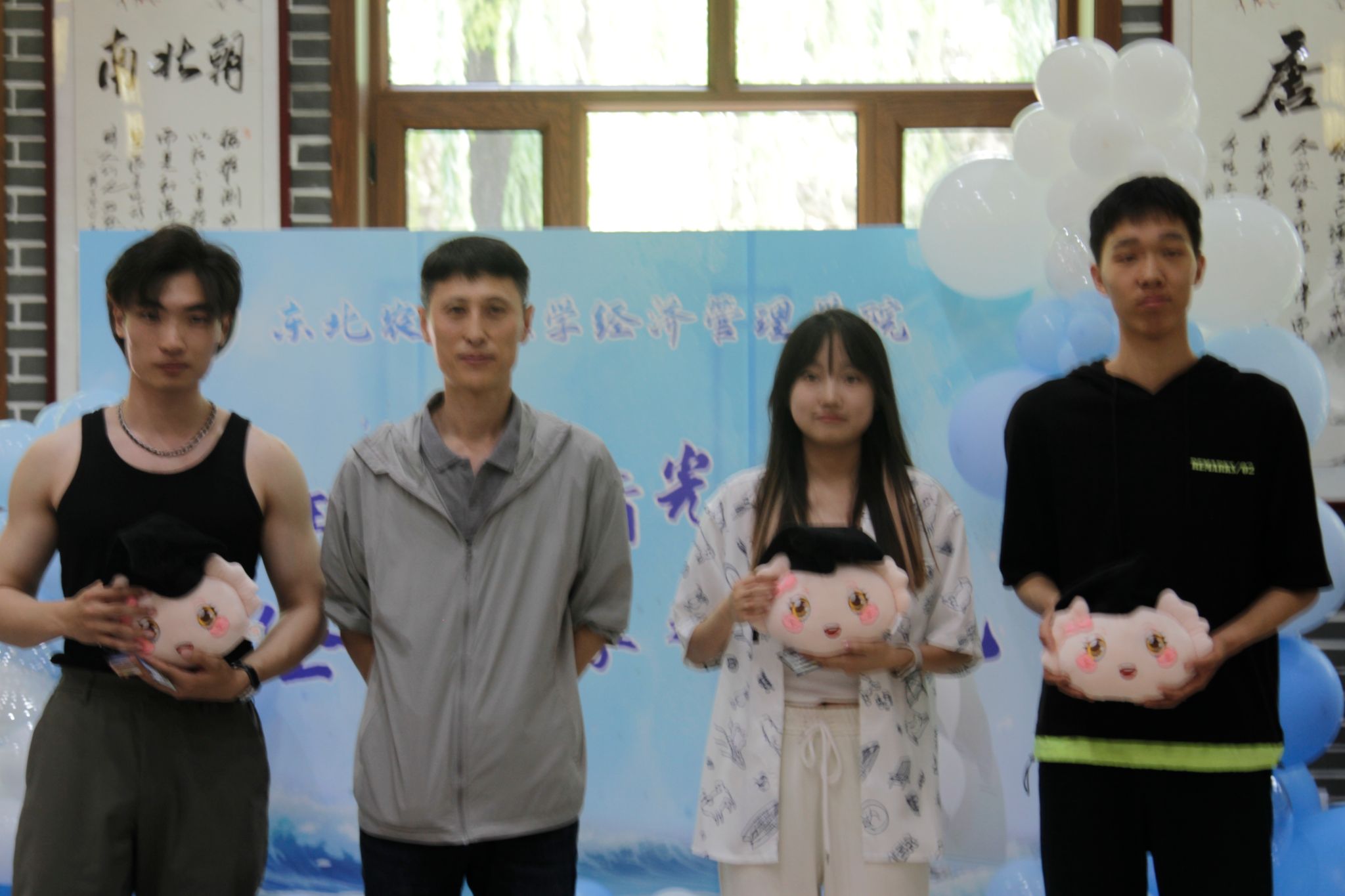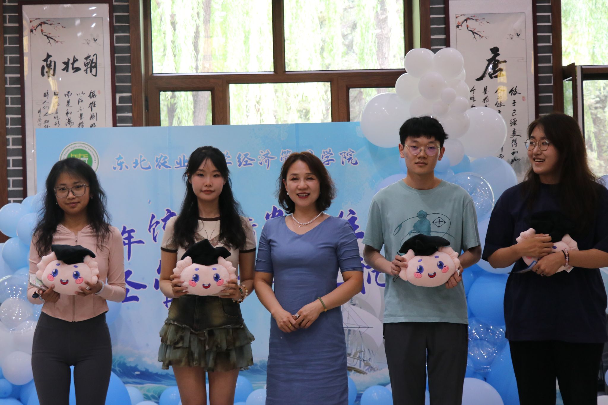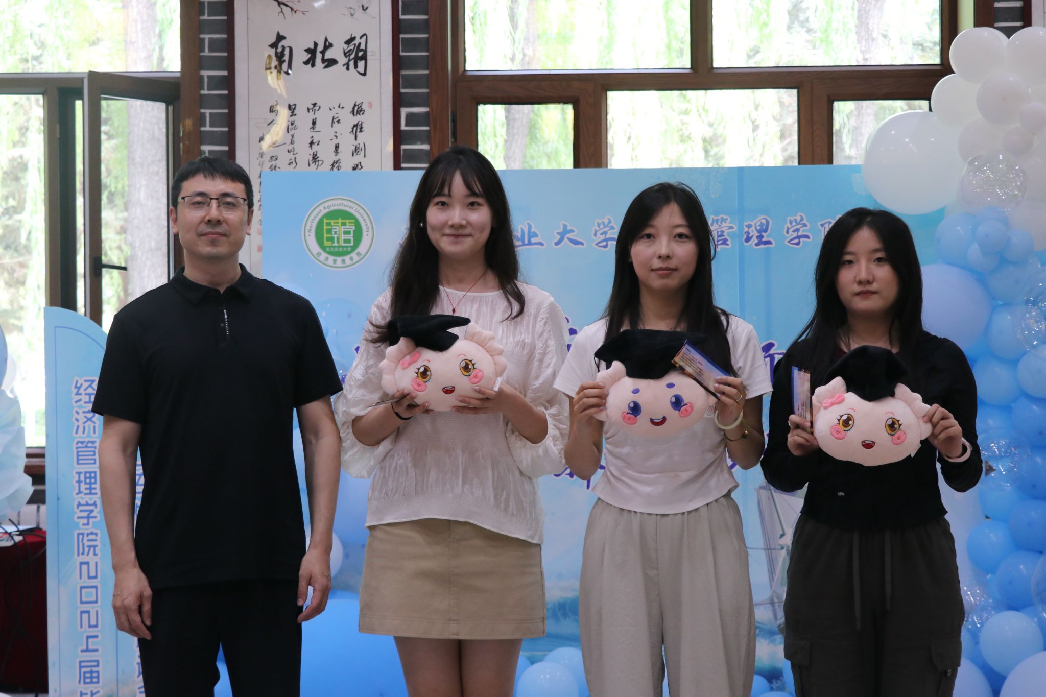 此外,公司为毕业生特别设计了抽奖环节,中奖的幸运毕业生获得了公司精心定制的饺子纪念品玩偶以及具有经管特色的文创产品,为他们留下了一段温馨、难忘的校园回忆与纪念。