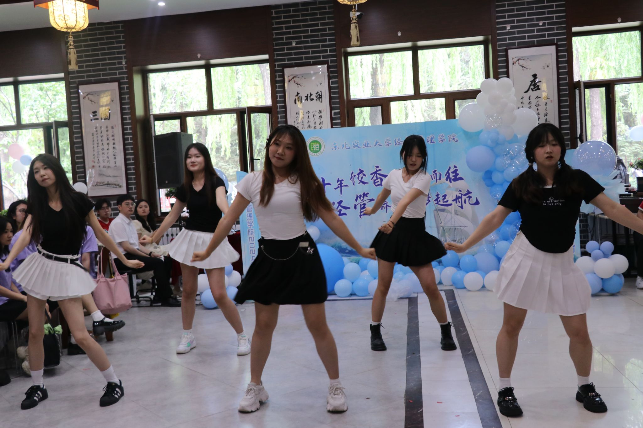 学子们欢聚一堂,谈论着对未来的憧憬与信心,传递着深厚的同窗情谊,喜悦之情如诗如歌,欢声笑语不绝于耳。在感人的氛围里,DNA舞团带来的现场舞蹈表演“Shake It”,活力四射的舞姿点燃了整个场地,展示了经管学子青春无畏的态度与活力,激励着毕业生们奋勇向前、砥砺前行,在新的人生旅程中不忘初心,继续追求卓越。