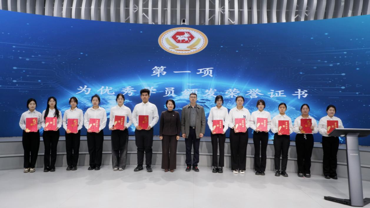 高天琦、胡畔为第一期优秀营员代表颁发荣誉证书
