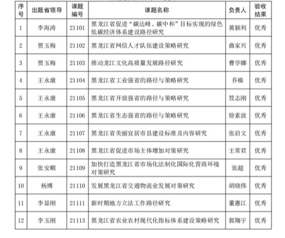 2021 年度黑龙江省经济社会发展重点研究课题(战略课题)结题验收结果一览表