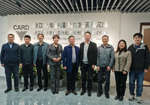 在浙江大学中国农村发展研究院,张启文一行与研究院常务副经理龚斌磊,农经系副系主任陈帅、教授鄢贞,研究院办公室主任王嘉陵、博士生代首寒等座谈交流。龚斌磊对张启文一行表示欢迎,并介绍了研究院的建设历程、代表成果、经验做法等。